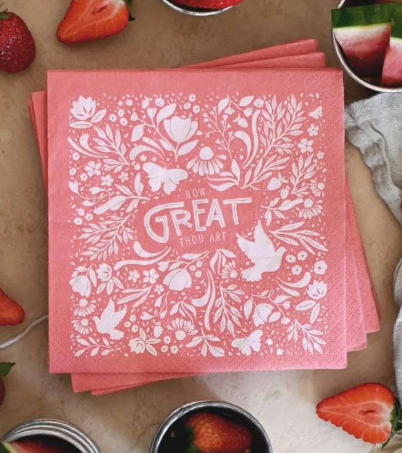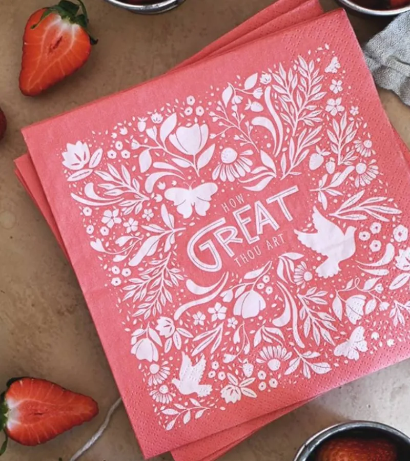 Flot serviet til når du får gæster. Med teksten How Great Thou Art / Hvor er du stor! (Gud) Efter teksten til sangen O store Gud.