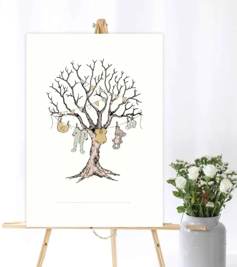 Smuk og unik fingerprint plakat med barnedåbstræ på – med plads til alle gæsternes personlige fingeraftryk.