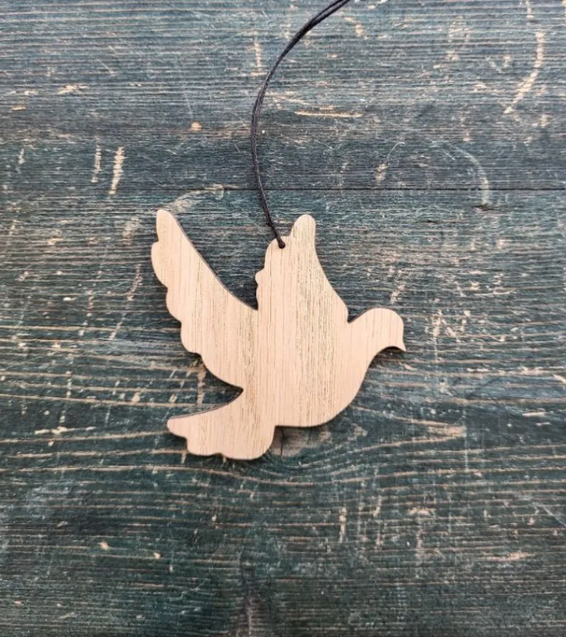 Denne due kan også bruges som en dåbshilsen fra kirken. Det er muligt at få indgraveret kirkens navn eller et dåbsord på dette ophæng. Hæng den i kirken hele året. Og når I holder dåbsgudstjeneste, er familierne inviteret til at komme og her kan de få deres helligåndsdue med hjem.