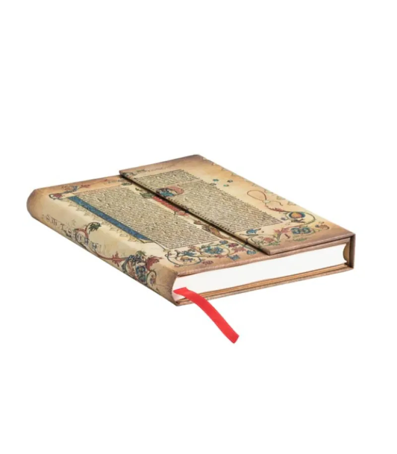 Denne Gutenberg-notesbog har et smukt motiv, lavet efter originalen i den første trykte bibel helt tilbage fra 1400 tallet.