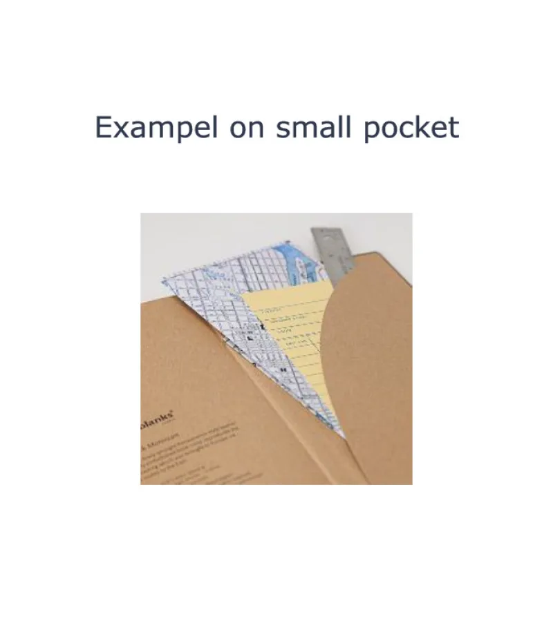 Hård ryg, stift omslag, god papirkvalitet. Med magnetlukning, så dine papirer ikke falder ud og lomme til løse papirer på indersiden af bagsiden.