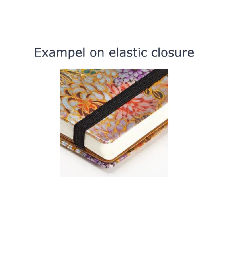 Hård ryg, stift omslag, god papirkvalitet. Med elastiklukning, så dine papirer ikke falder ud og lomme til løse papirer på indersiden af bagsiden.