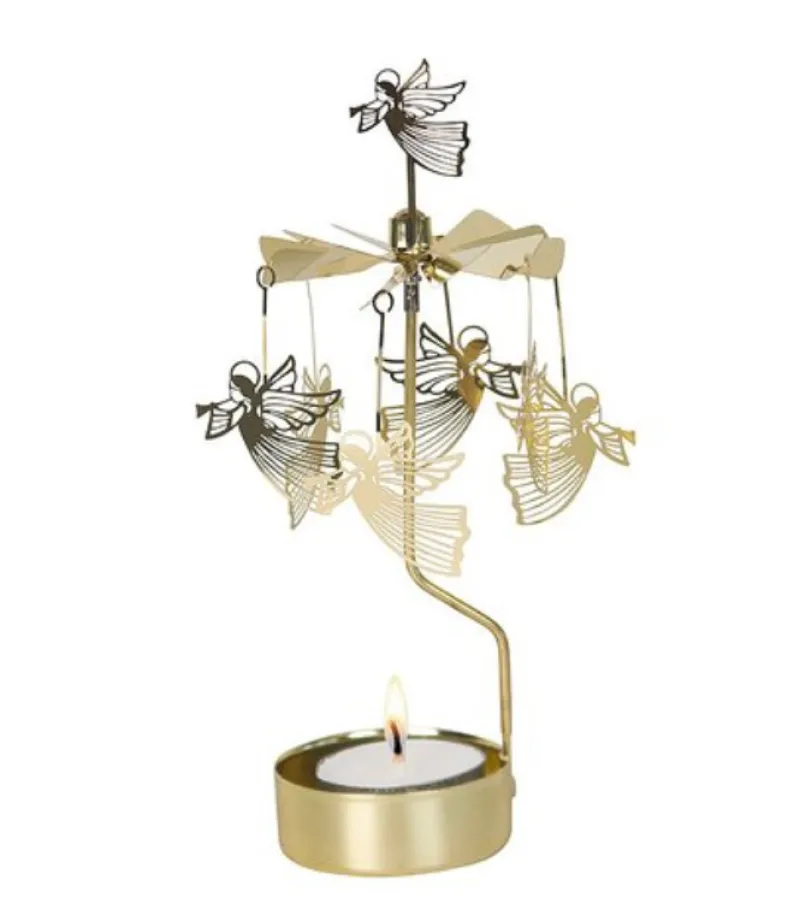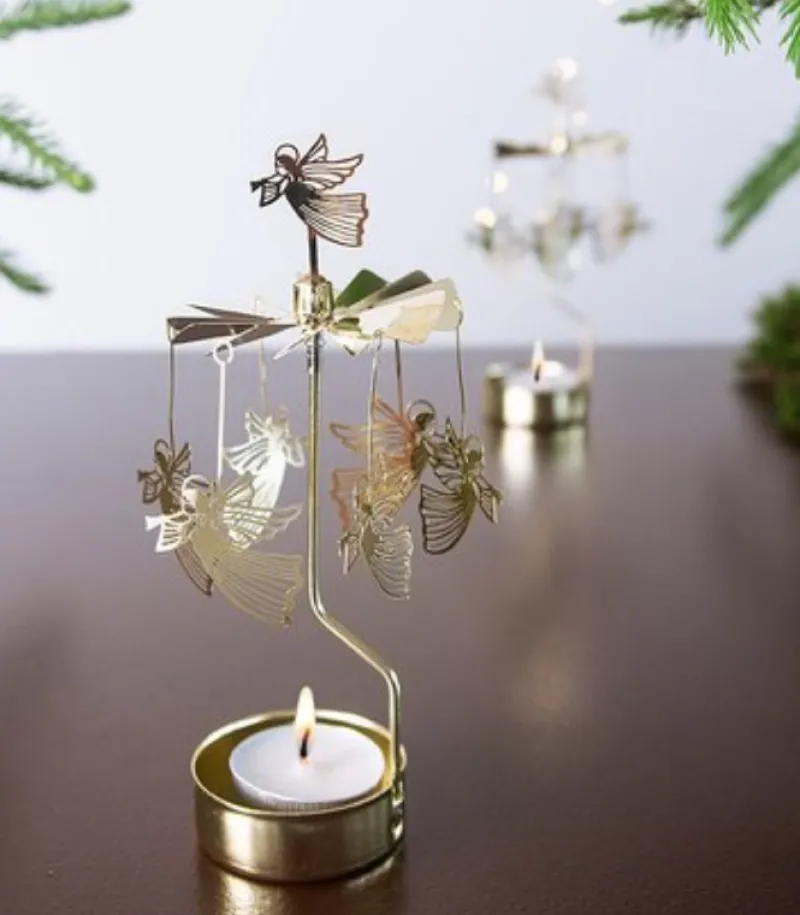 Når fyrfadslyset er tændt gør varmen at at englene begynder at rotere rundt.