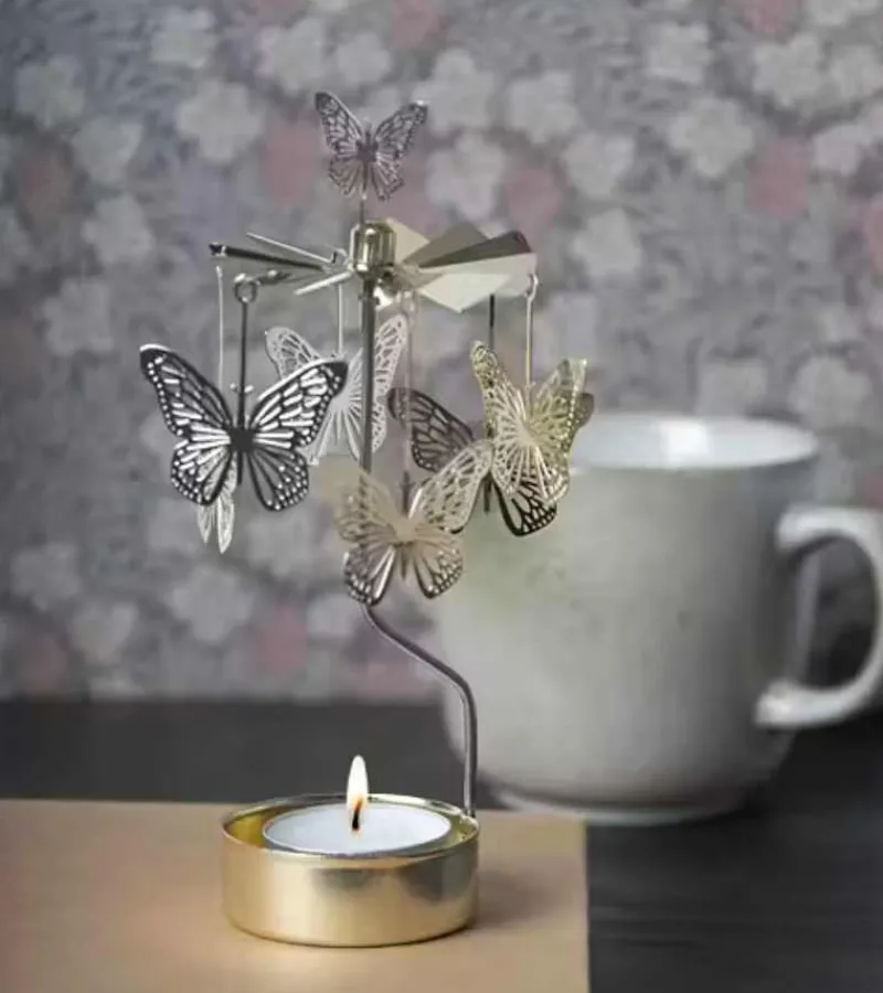 Denne fine lysspil med sommerfugle er et frisk pust i forårs- og sommervinden. 6 fine sommerfugle danser rundt og glimter, når du sætter ild i et stearinlys under lysspillet.