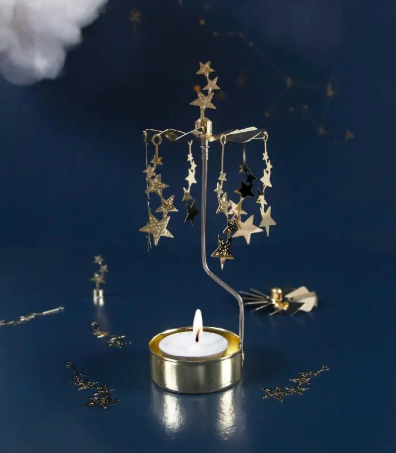 Når fyrfadslyset er tændt, begynder stjernerne at rotere rundt.
