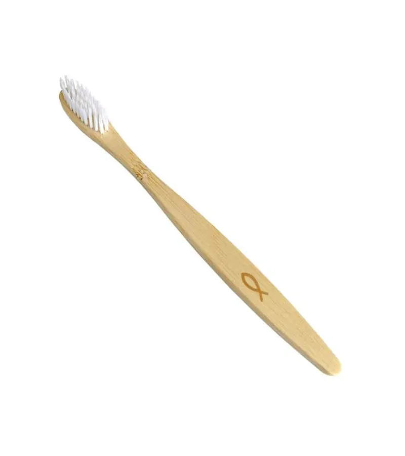 Bambus Tandbørste med en ICHTHYS Fisk – et alternativ til en almindelig plasttandbørste.