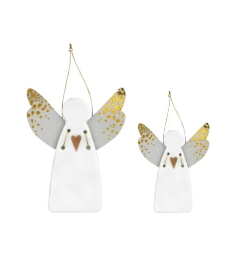 Utrolig smuk engel i porcelæn, som man både kan hænge på juletræet, lysestagen, væggen eller om en fin julegren.