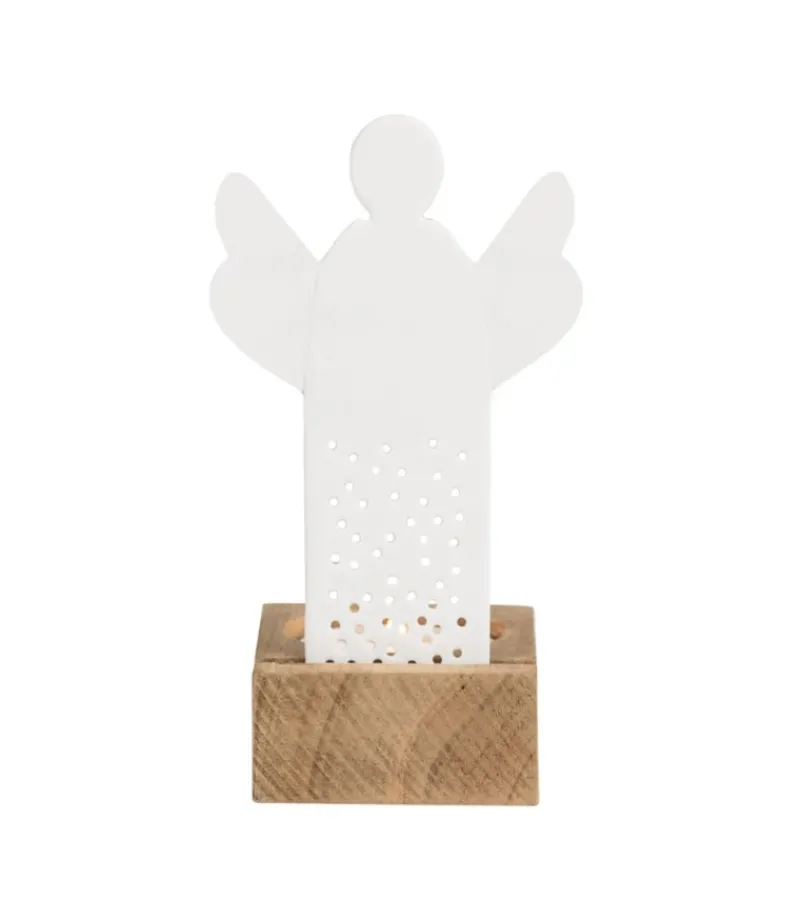 Smuk og enkel engel, hvor der kan sættes en LED fyrfadsstage bag ved, så der kommer et fint skær.