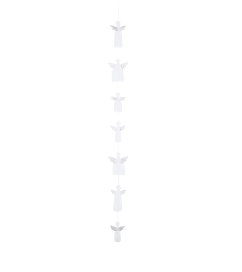 Smuk papirssnor med 7 engle på. De er i farverne hvid og sølv.