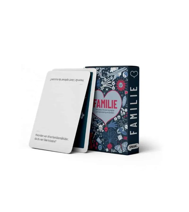 Samtalekort med fokus på familien, om alt det, som man ikke altid får talt om. Om det gode og smukke ved at være familie, men også det som er udfordrende og har gjort ondt.
