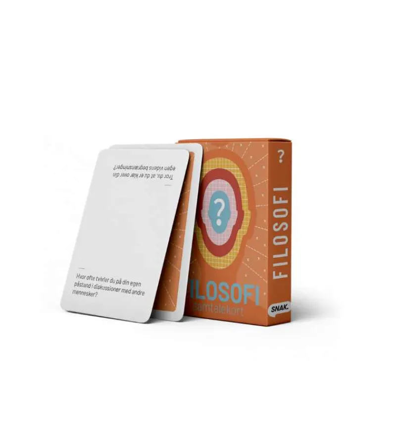I dette sæt samtalekort bliver der lagt op til en udveksling af forklaring på livets store spørgsmål. Med hjælp fra nogle af historiens største tænkere, bliver der sat ord på mange af de helt essentielle aspekter af det at være menneske. Hvordan behandler vi hinanden? Hvad vil det sige at være til?