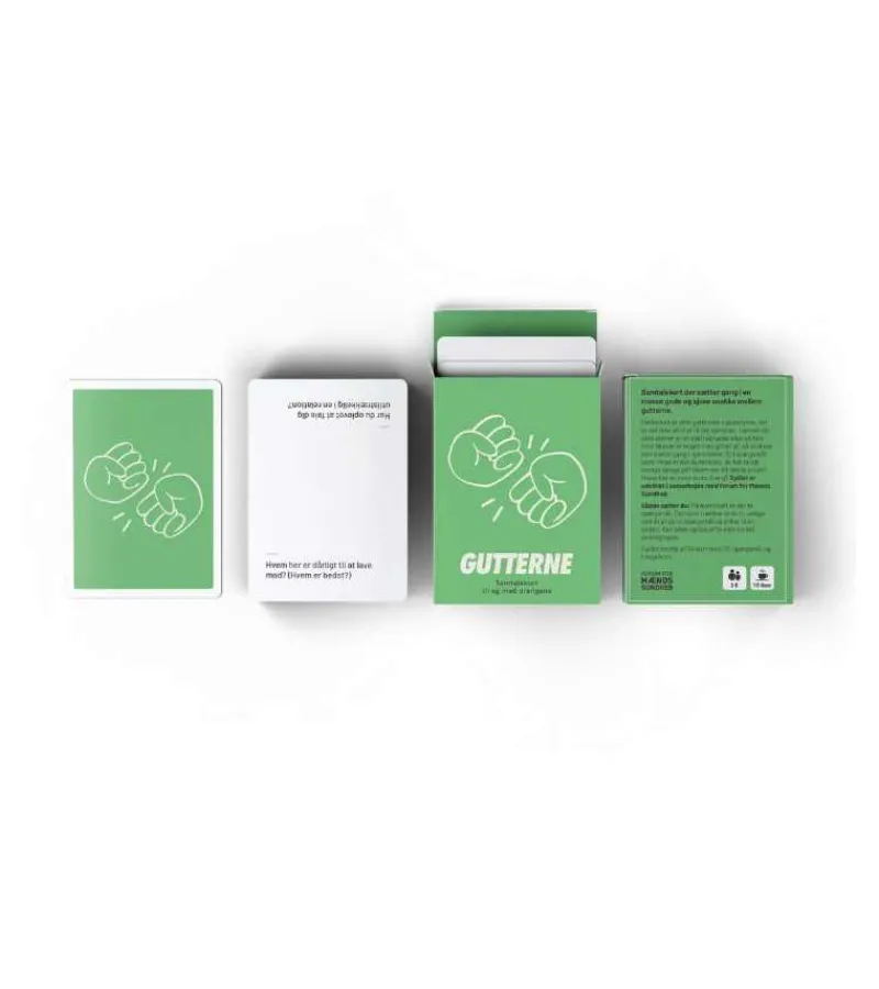 Får I snakket – sådan rigtigt når Gutterne mødes? Uanset om dine venner er en støttegruppe eller en flok hvor følelser er noget man griner af, så vil disse kort sætte gang i nye snakke. Stil spørgsmål som: Hvad er det dummeste, du har brugt mange penge på? Hvad ville du ønske, at du var bedre til?