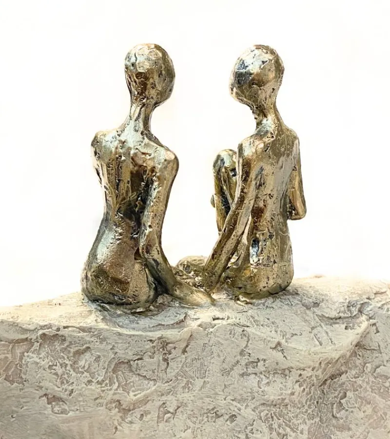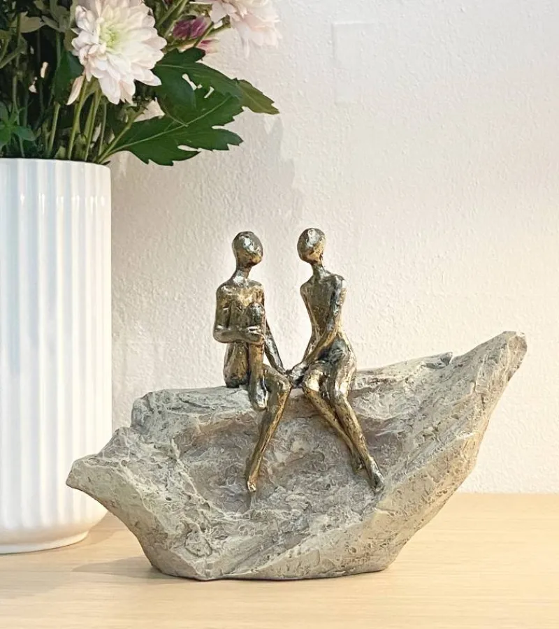 Fin skulptur med et par på en sten. Den har et fint antik-look i naturfarver.