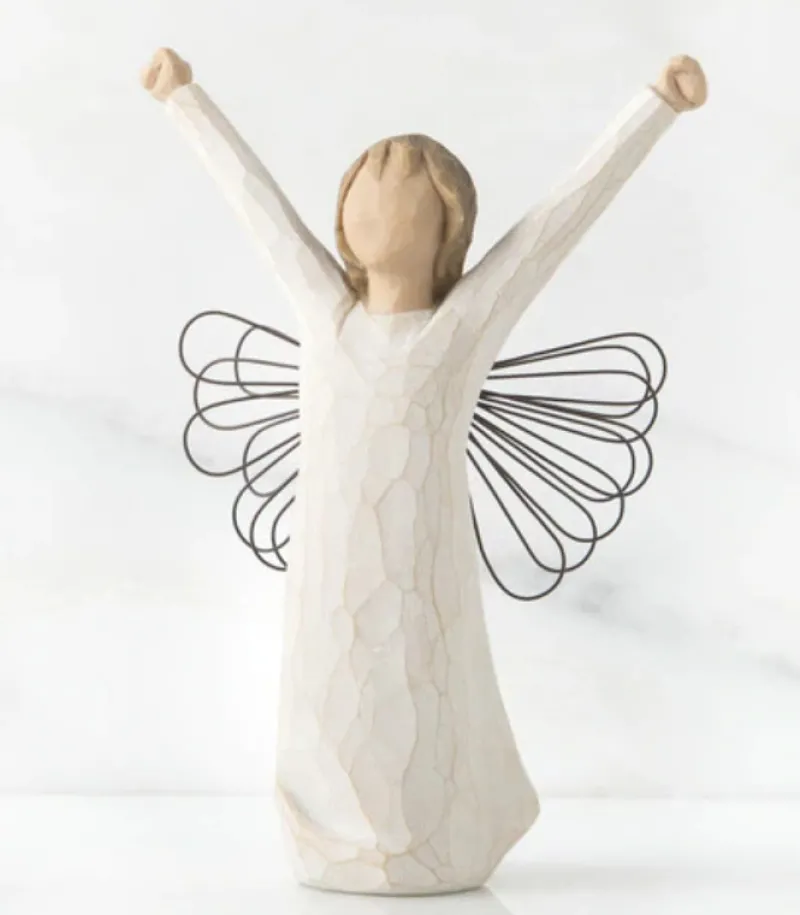 Når vi har gennemgået noget svært, overkommet en sygdom, færdig med den sidste eksamen, så er der grund til glæde! Dét symbolisere denne fine figur der hedder Angel of Courage.